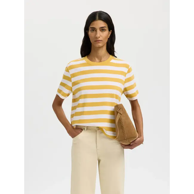 Beoordeel Selected Femme ESSENTIAL STRIPED BOXY TEE Ochre