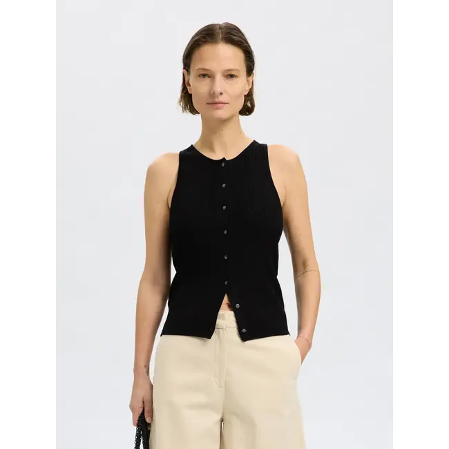 Beoordeel Selected Femme TRIXIE KNIT BUTTON TOP Black